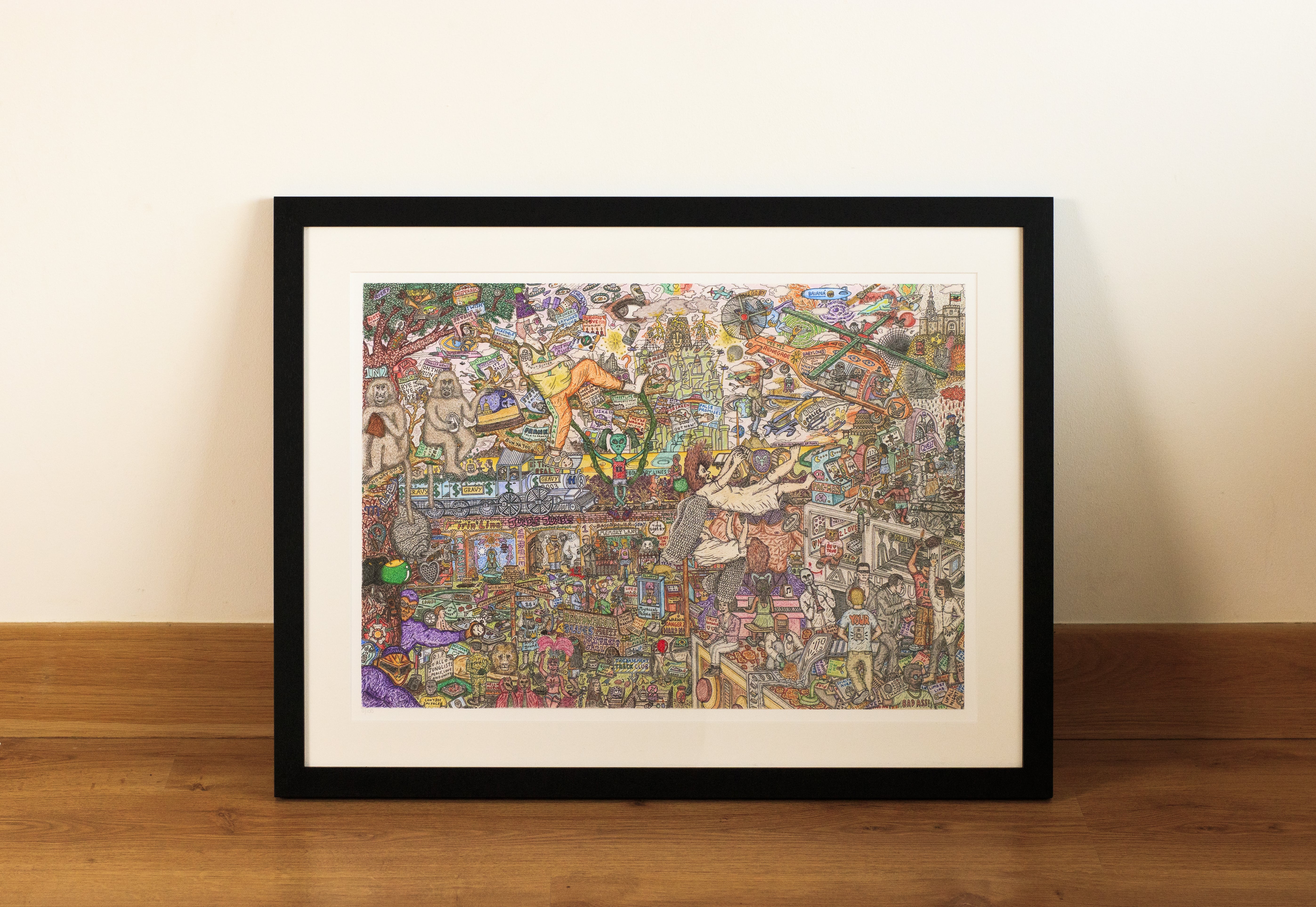 Printed on 310gsm fine art paper, each print can be ordered framed or unframed, depending on how you want to showcase it. The artwork itself is a visual treasure hunt, packed with hundreds of hidden references to Jungle culture, record labels, tunes, and legends from across the decades.