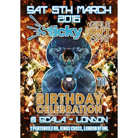 STICKY 8TH BIRTHDAY ★ GIRLS DONT PAY – SAT 5TH MARCH @ SCALA